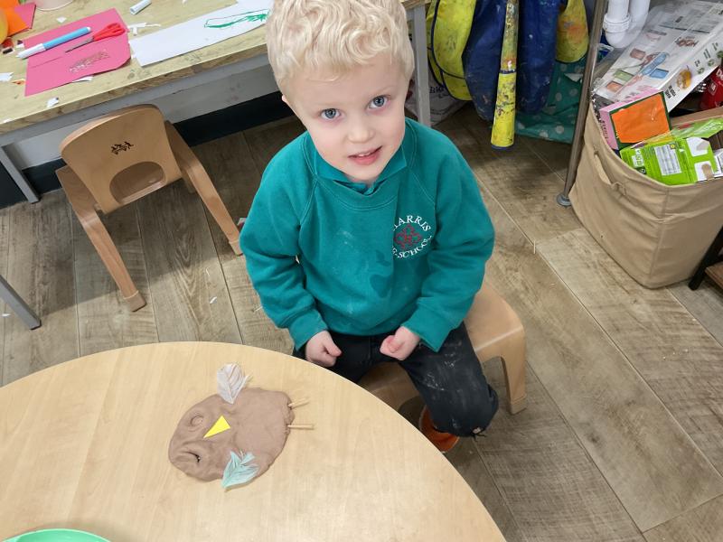 We looked at the artwork of Jeff Koons and his balloon dogs. We even had a go at making a balloon dog and covering it in paper mache. Mostly though we explore sculpture and used clay to make our very own animals.