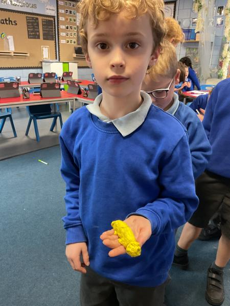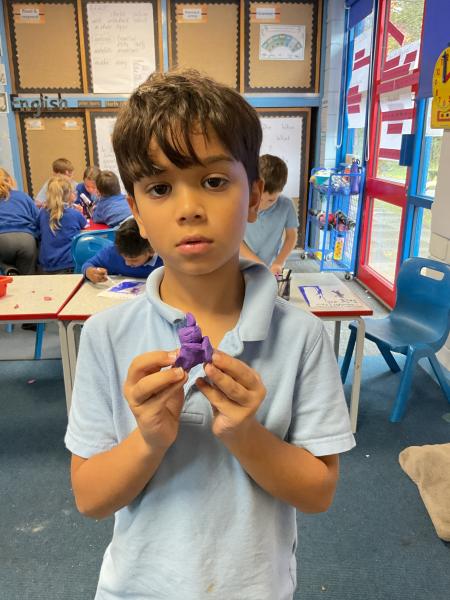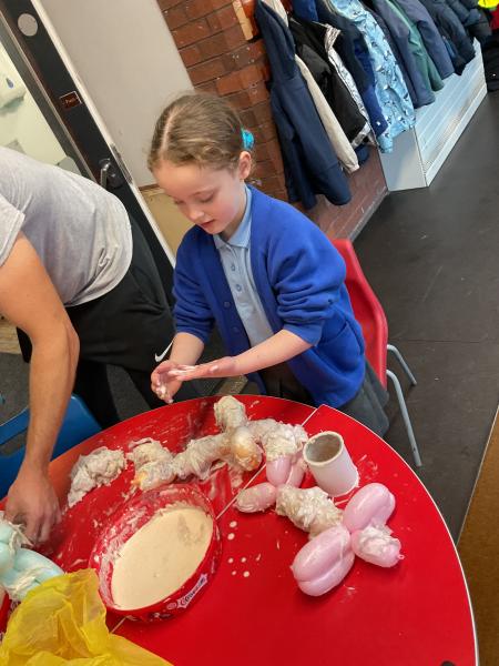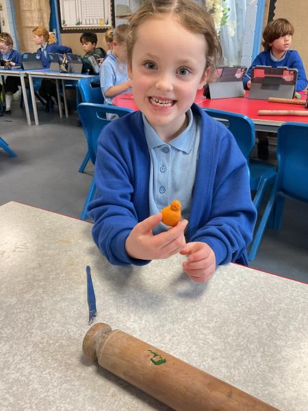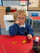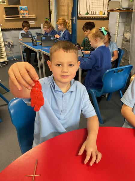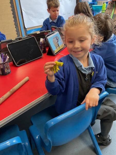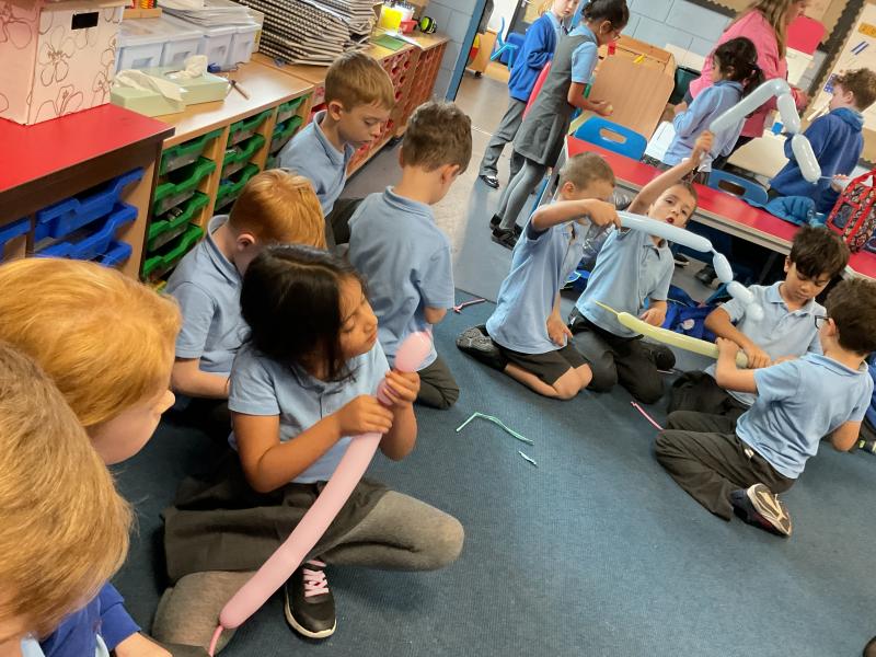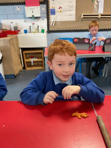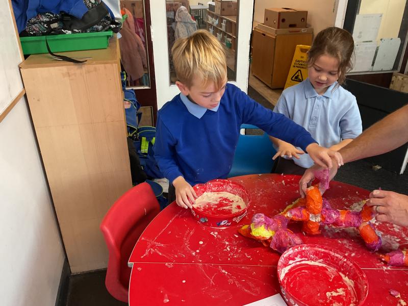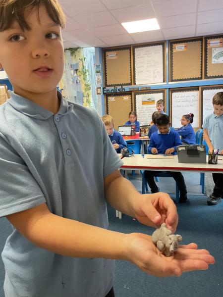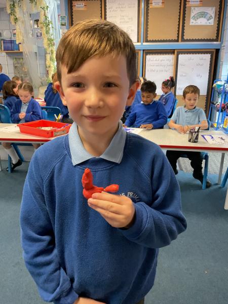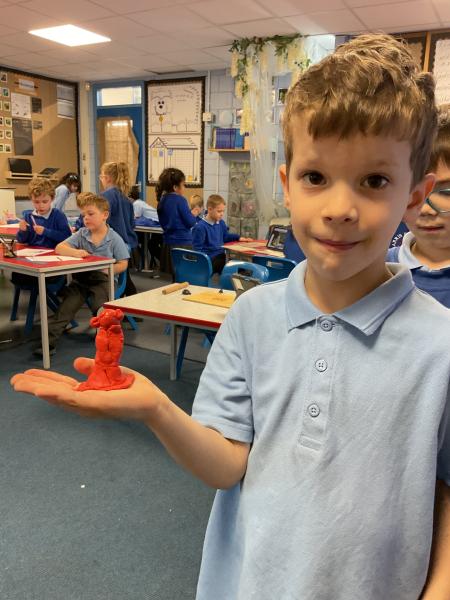 We looked at the artwork of Jeff Koons and his balloon dogs. We even had a go at making a balloon dog and covering it in paper mache. Mostly though we explore sculpture and used clay to make our very own animals.