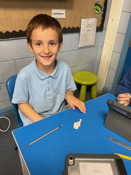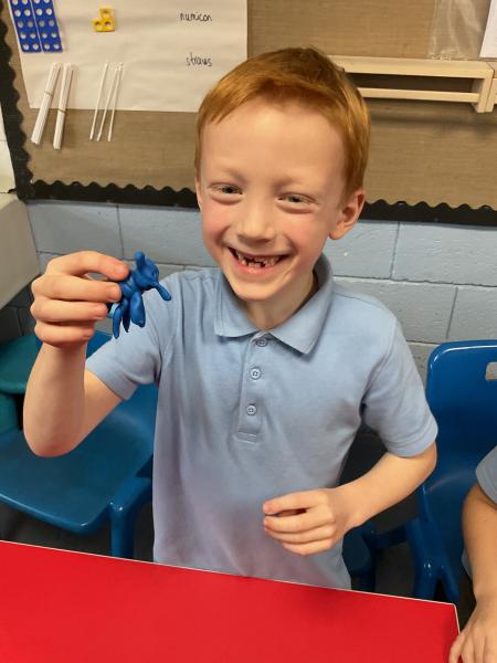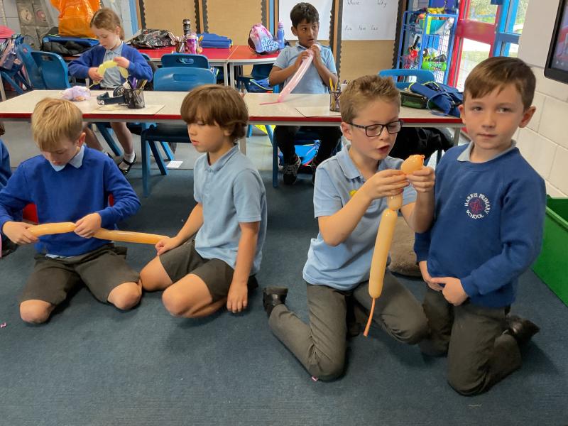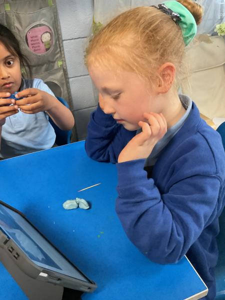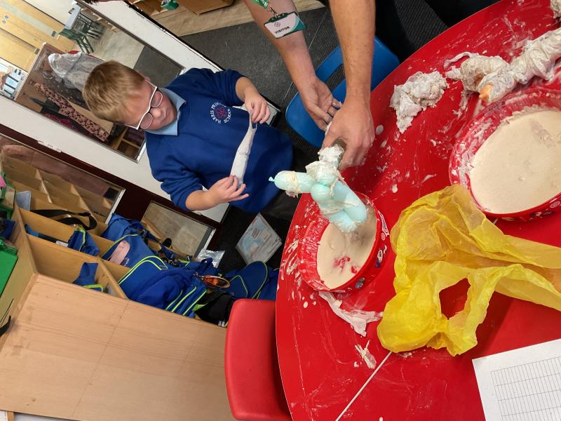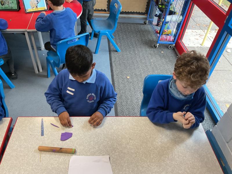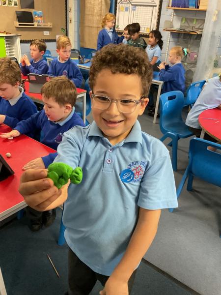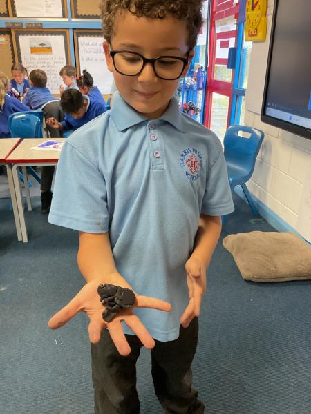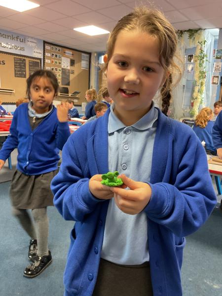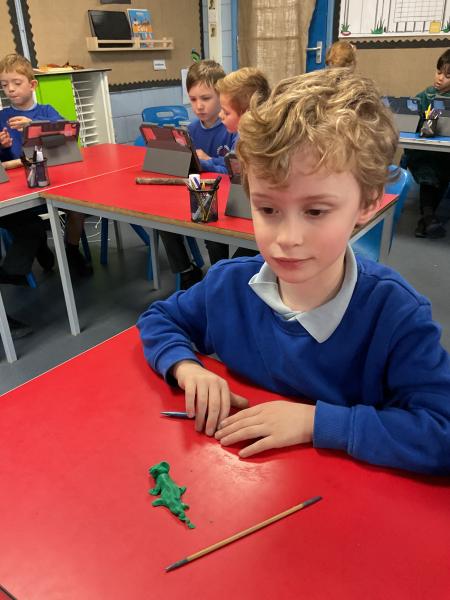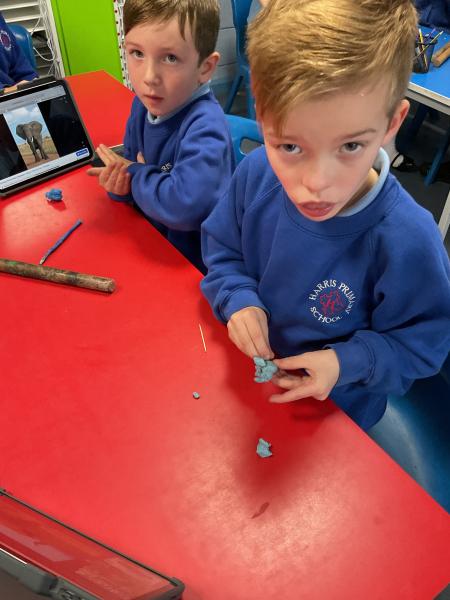 We looked at the artwork of Jeff Koons and his balloon dogs. We even had a go at making a balloon dog and covering it in paper mache. Mostly though we explore sculpture and used clay to make our very own animals.